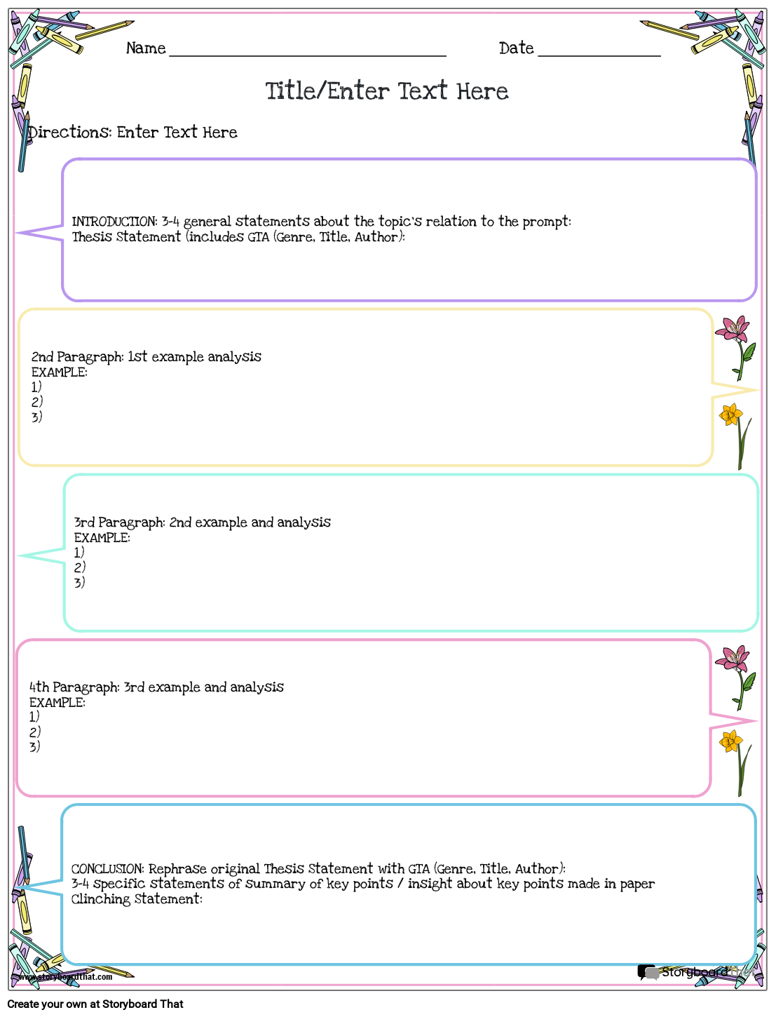 INTRODUCTION: 3-4 general statements about the topic's relation to the prompt:Thesis Statement (includes GTA (Genre, Title, Author):