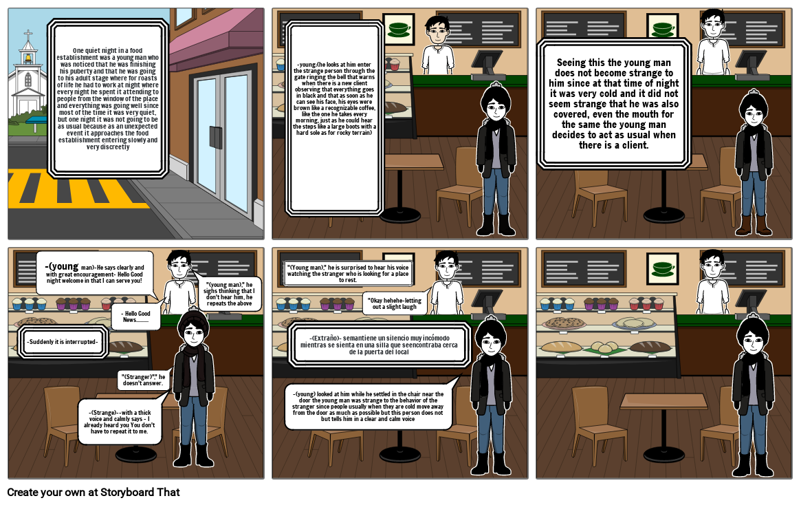 One quiet night in a food establishment was a young man who was noticed that he was finishing his puberty and that he was going to his adult stage where for roasts of life he had to work at night where every night he spent it attending to people from the window of the place and everything was going well since most of the time it was very quiet, but one night it was not going to be as usual because as an unexpected event it approaches the food establishment entering slowly and very discreetly
