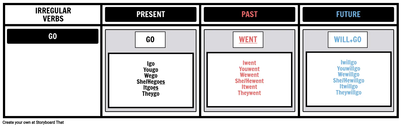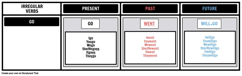 I wentYou wentWe wentShe/He wentIt wentThey went