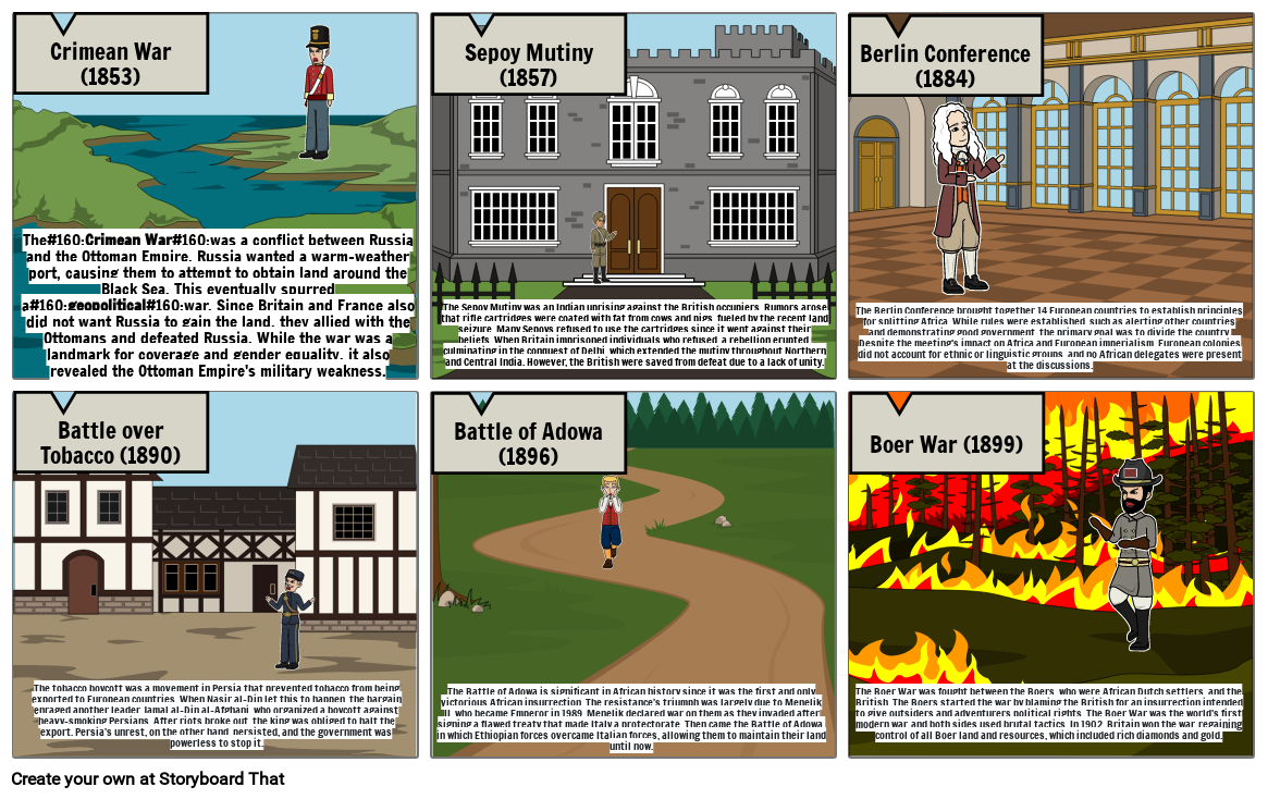 The#160;Crimean War#160;was a conflict between Russia and the Ottoman Empire. Russia wanted a warm-weather port, causing them to attempt to obtain land around the Black Sea. This eventually spurred a#160;geopolitical#160;war. Since Britain and France also did not want Russia to gain the land, they allied with the Ottomans and defeated Russia. While the war was a landmark for coverage and gender equality, it also revealed the Ottoman Empire's military weakness.