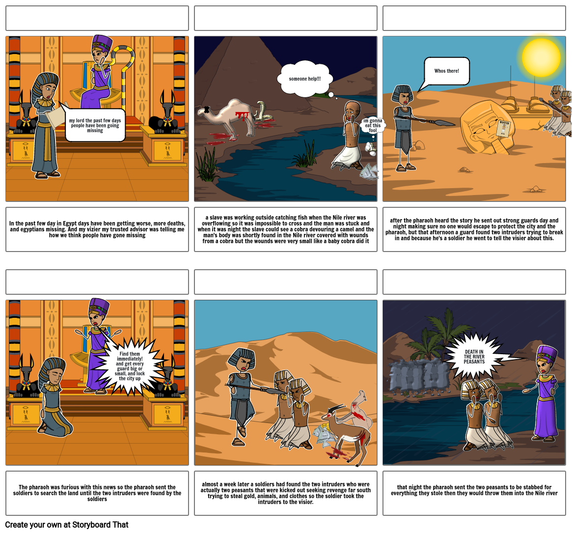 that night the pharaoh sent the two peasants to be stabbed for everything they stole then they would throw them into the Nile river