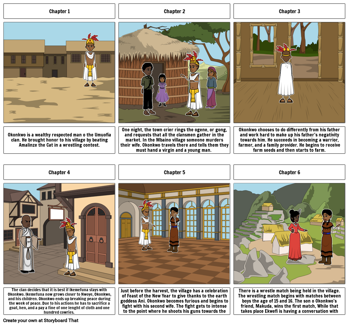 Okonkwo is a wealthy respected man o the Umuofia clan. He brought honor to his village by beating Amalinze the Cat in a wrestling contest.