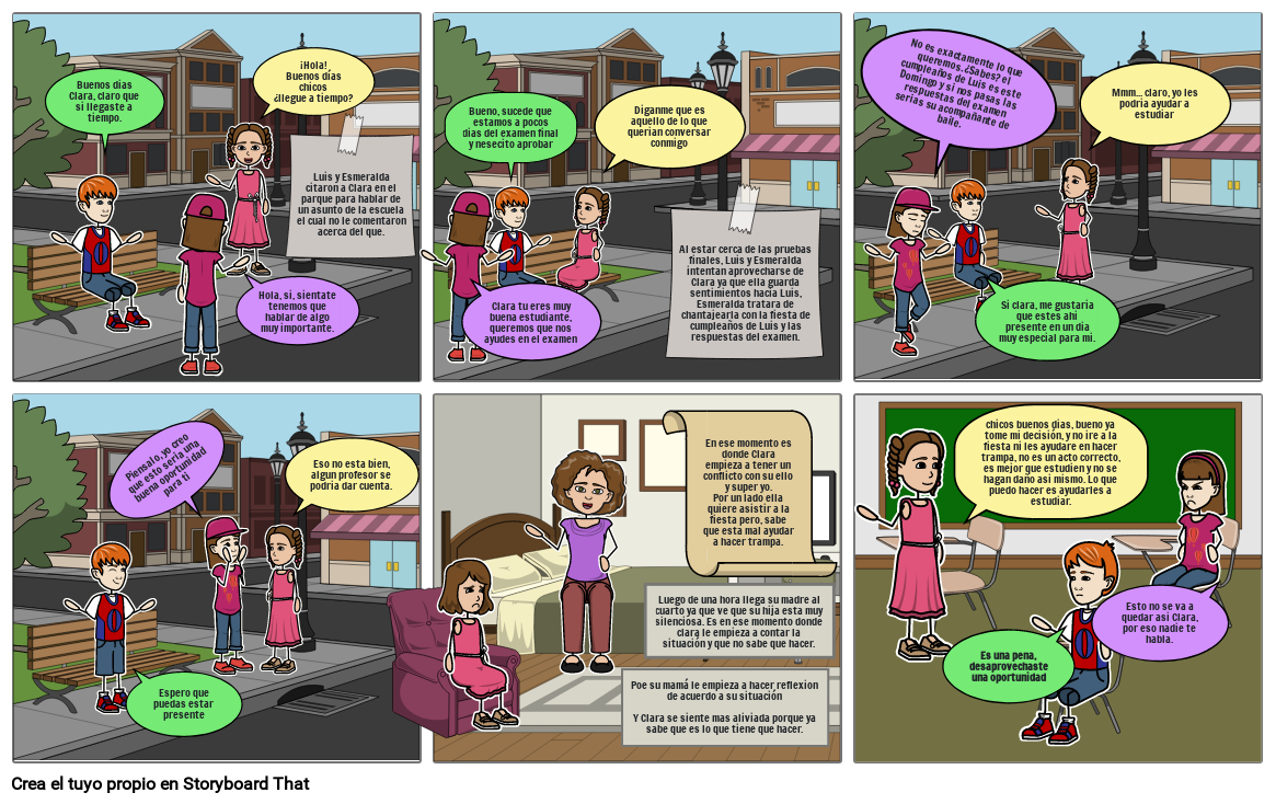 Luis y Esmeralda citaron a Clara en el parque para hablar de un asunto de la escuela el cual no le comentaron acerca del que.