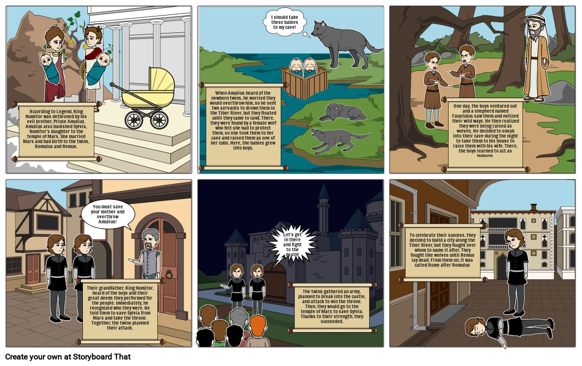 Their grandfather, King Numitor, heard of the boys and their great deeds they performed for the people. Immediately, he recognized who they were. He told them to save Sylvia from Mars and take the throne. Together, the twins planned their attack.