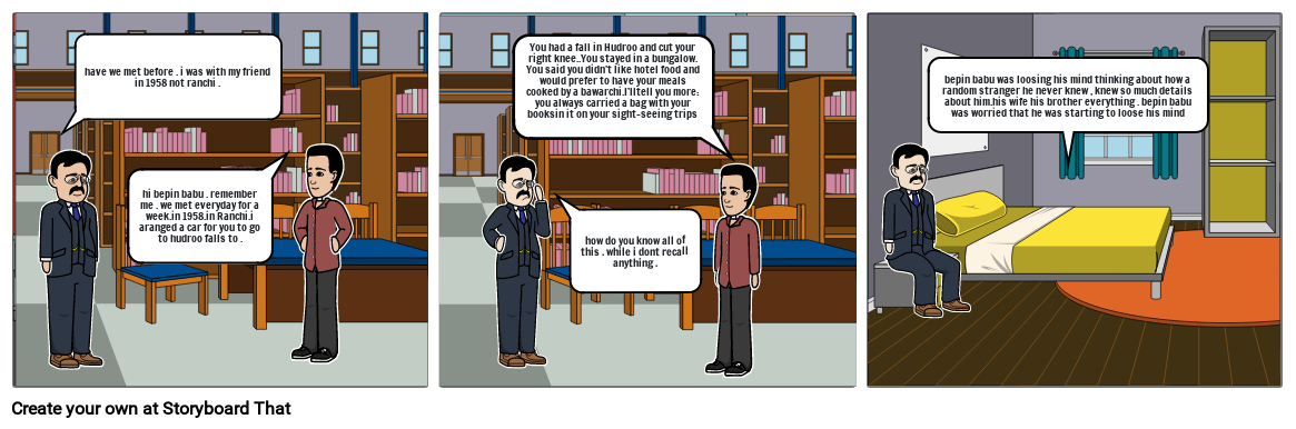 Bepin Babu was frustrated. How could a random guy know stuff about him that he himself doesn't know . He knew all the details about the Ranchi trip where Bepin had never been. He had also mentioned that Bepin had bought a friend with him to the trip in the 58'.