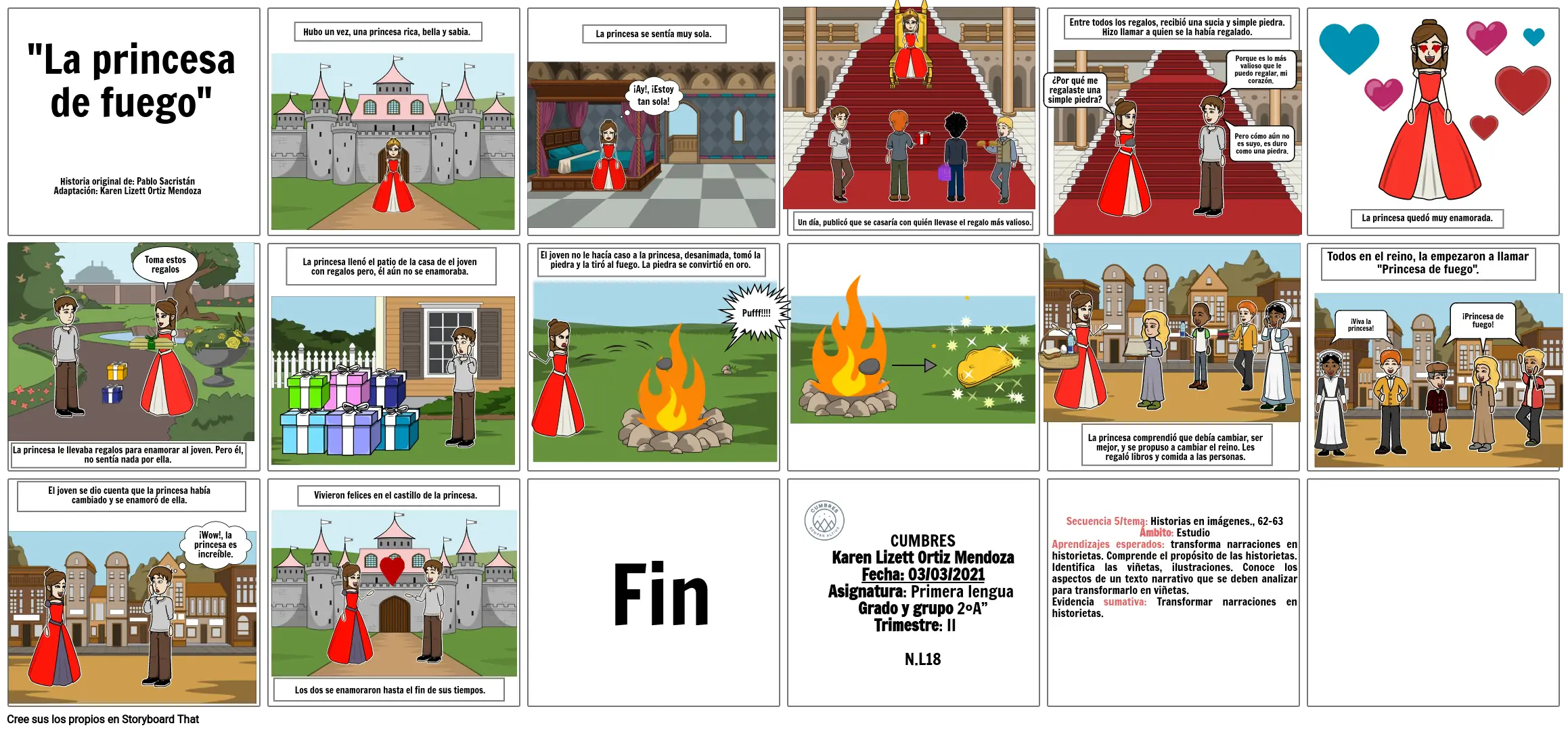 El joven no le hacía caso a la princesa, desanimada, tomó la piedra y la tiró al fuego. La piedra se convirtió en oro.
