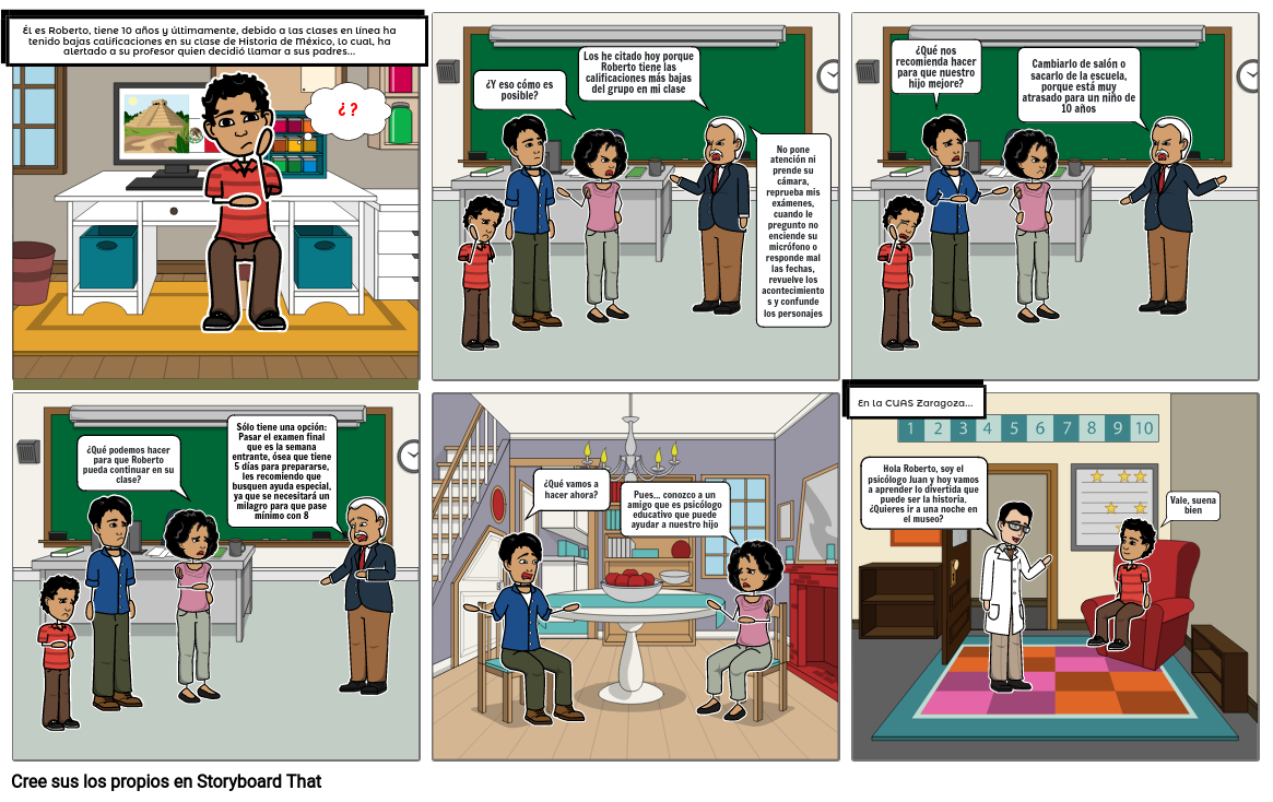 Él es Roberto, tiene 10 años y últimamente, debido a las clases en línea ha tenido bajas calificaciones en su clase de Historia de México, lo cual, ha alertado a su profesor quien decidió llamar a sus padres...