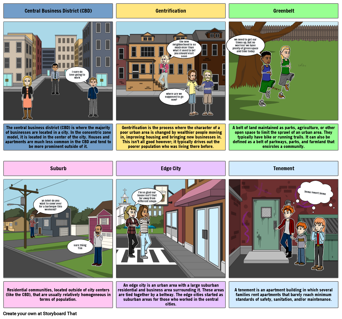 Gentrification is the process where the character of a poor urban area is changed by wealthier people moving in, improving housing and bringing new businesses in. This isn't all good however; it typically drives out the poorer population who was living there before.