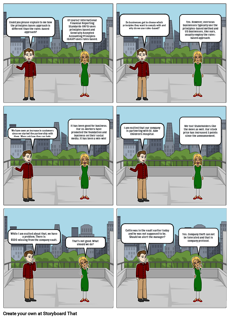 Of course! International Financial Reporting Standards (IRFS) uses principles based and Generally Accepted Accounting Principles (GAAP) uses rules based.
