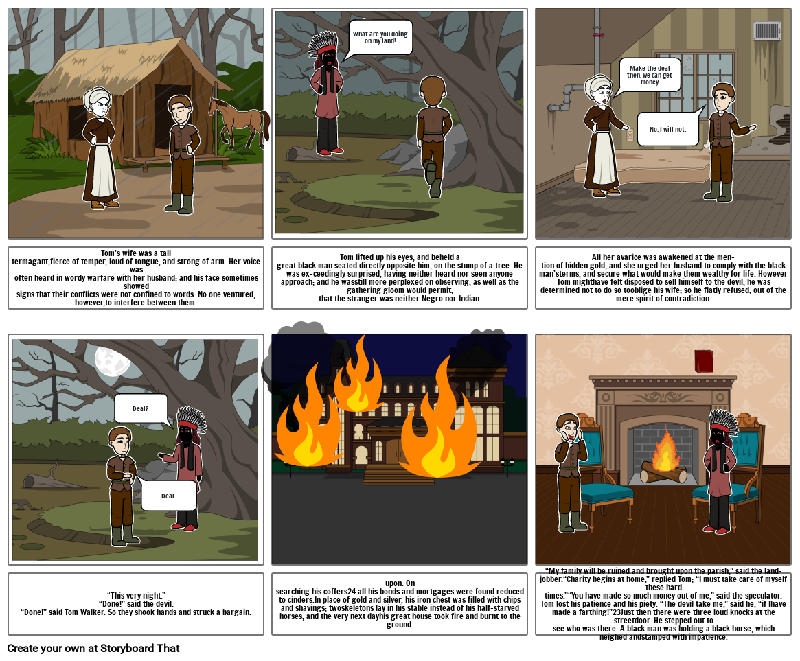 “This very night.”“Done!” said the devil.“Done!” said Tom Walker. So they shook hands and struck a bargain.
