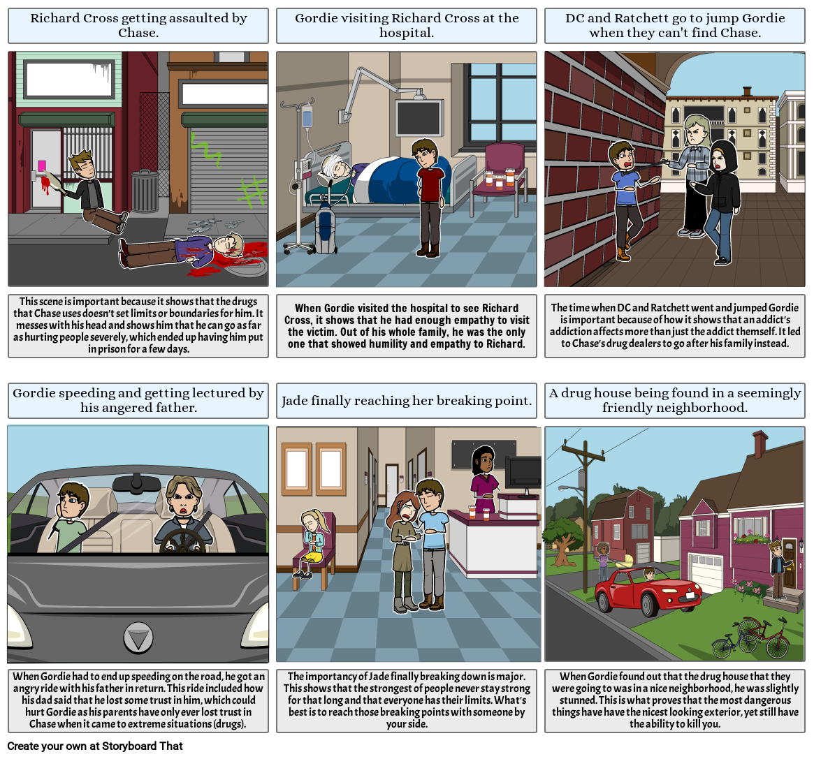 This scene is important because it shows that the drugs that Chase uses doesn't set limits or boundaries for him. It messes with his head and shows him that he can go as far as hurting people severely, which ended up having him put in prison for a few days.