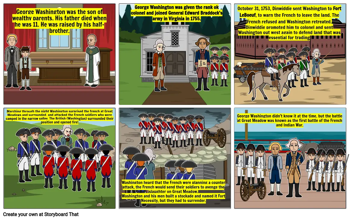 Marching through the night Washington surprised the french at Great Meadows and surrounded, and attacked the French soldiers who were camped in the narrow valley. The British (Washington) surrounded their position and opened fire!