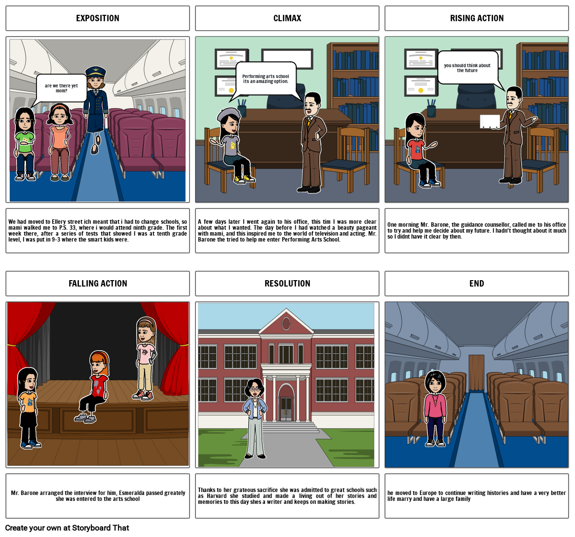 Mr. Barone arranged the interview for him, Esmeralda passed greately she was entered to the arts school