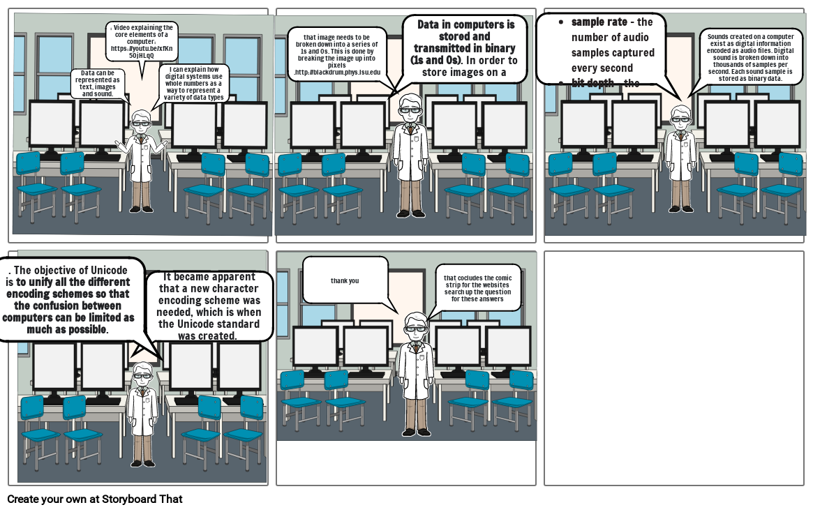 that image needs to be broken down into a series of 1s and 0s. This is done by breaking the image up into pixels .http://blackdrum.phys.lsu.edu
