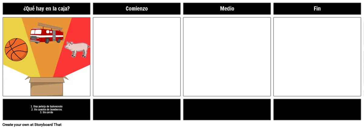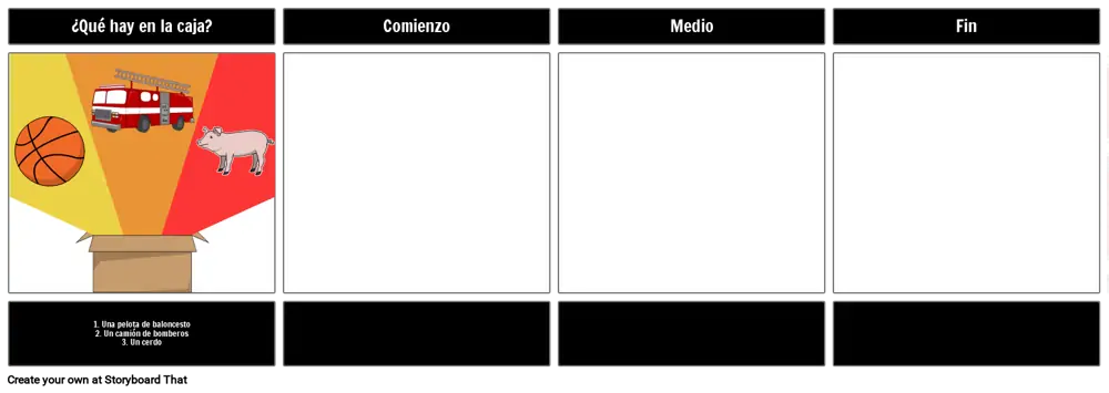 1. Una pelota de baloncesto 2. Un camión de bomberos 3. Un cerdo