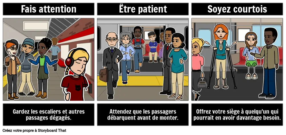 Exemples d'annonces d'intérêt public : Comment prendre le métro. Faire un message d'intérêt public à l'aide d'un storyboard