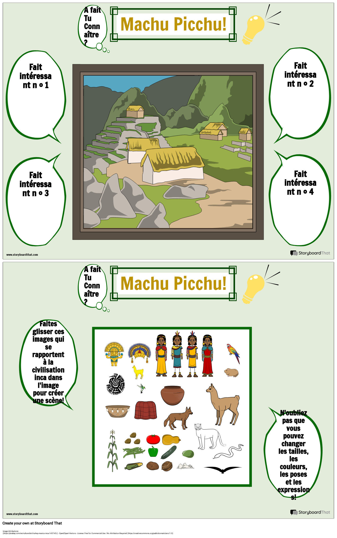 Faites glisser ces images qui se rapportent à la civilisation inca dans l'image pour créer une scène!