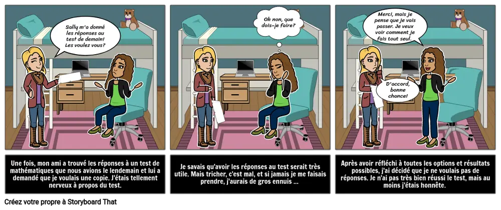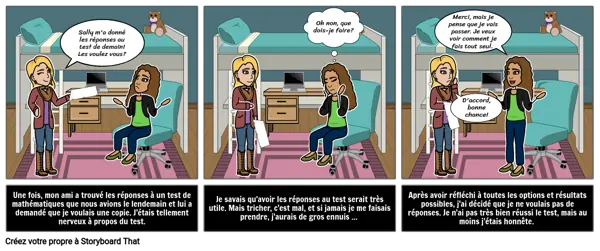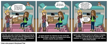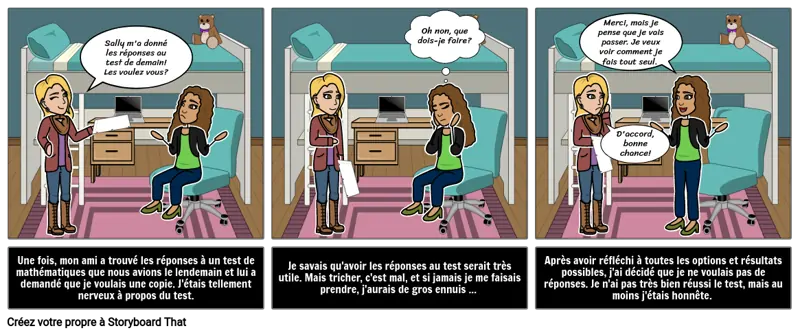 Je savais qu'avoir les réponses au test serait très utile. Mais tricher, c'est mal, et si jamais je me faisais prendre, j'aurais de gros ennuis ...