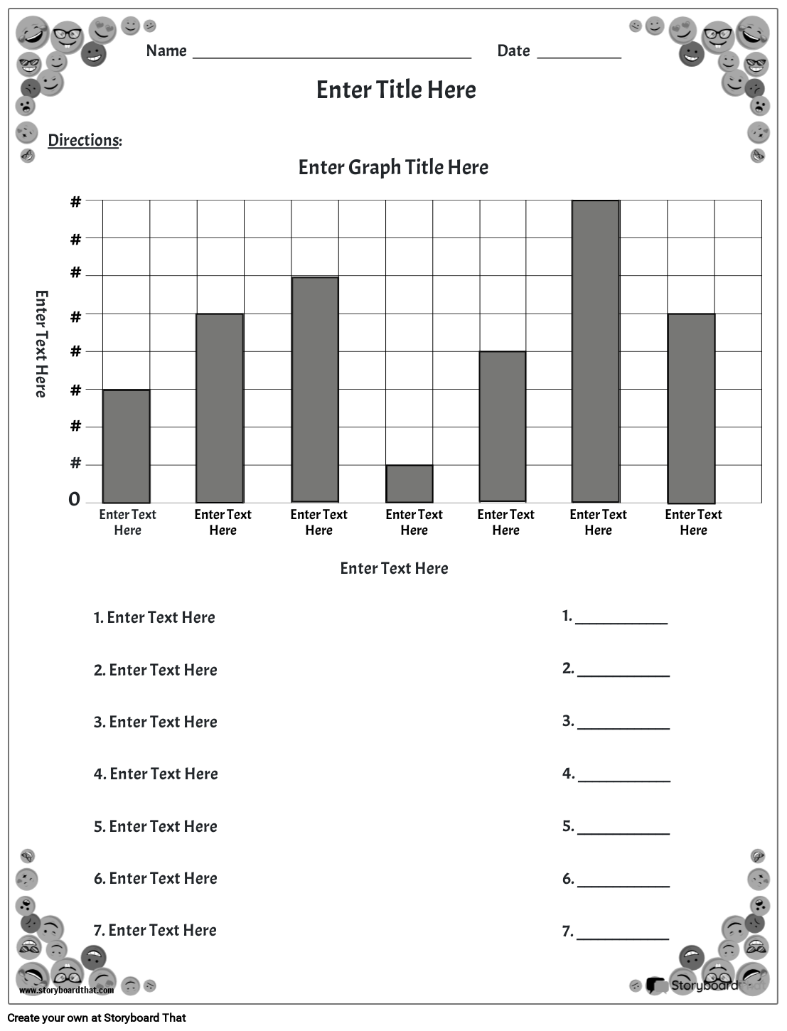 हमारे प्रीमियर बार ग्राफ़ टेम्प्लेट को कॉपी और संपादित करें! इमोजी थीम्ड, पोर्ट्रेट लेआउट।