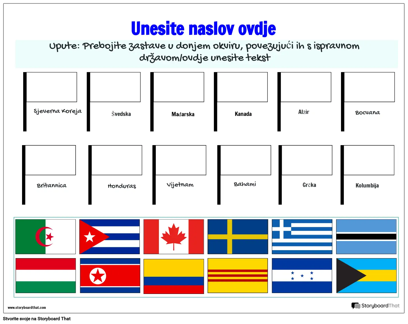 Upute: Prebojite zastave u donjem okviru, povezujući ih s ispravnom državom/ovdje unesite tekst