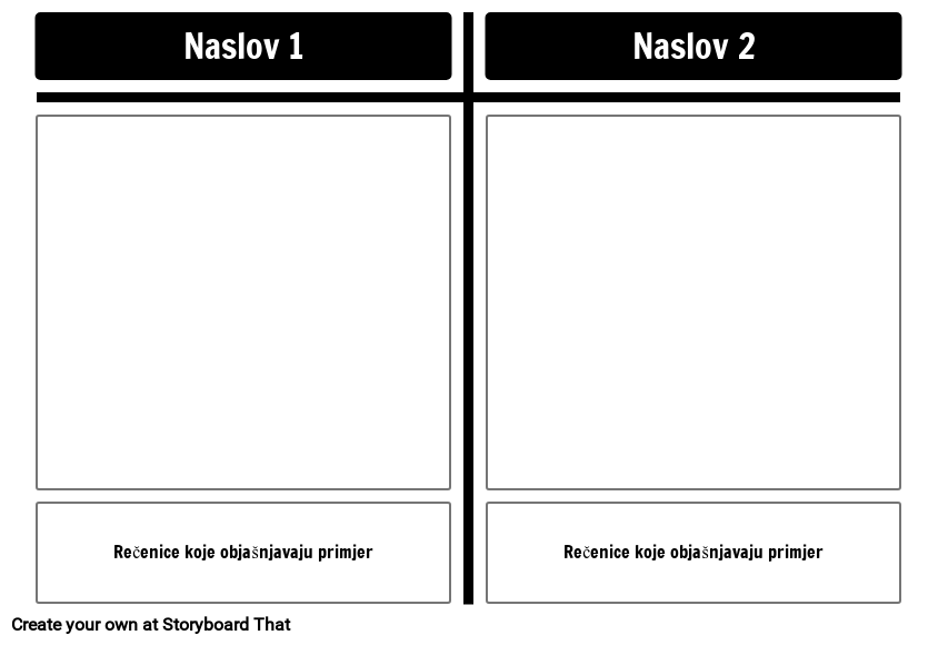 Osnovni predložak T-grafikona s okvirima s opisima i generičkim naslovima. Ažurirajte tekst kako bi odgovarao zadatku i dajte studentima!