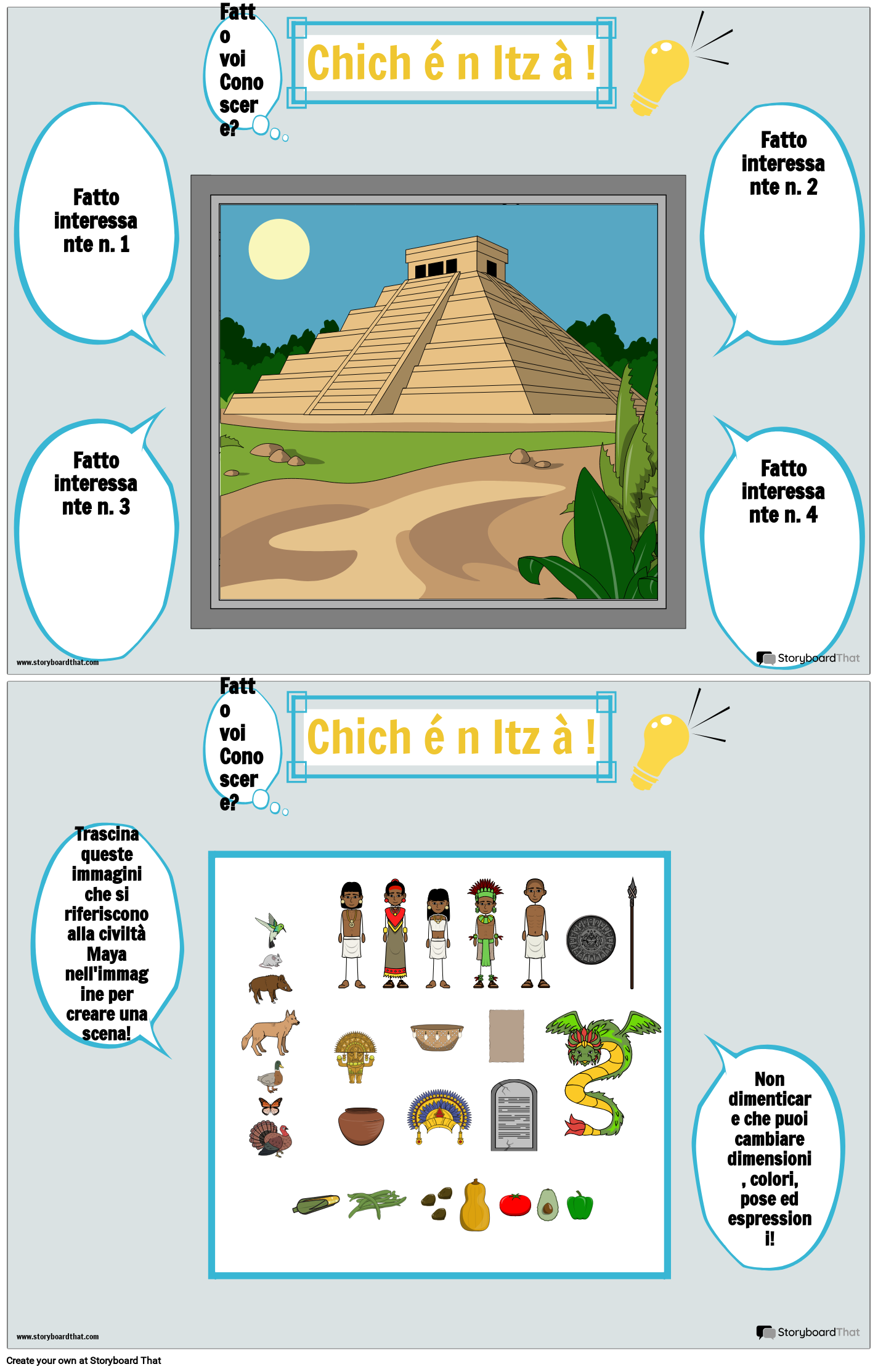 Trascina queste immagini che si riferiscono alla civiltà Maya nell'immagine per creare una scena!