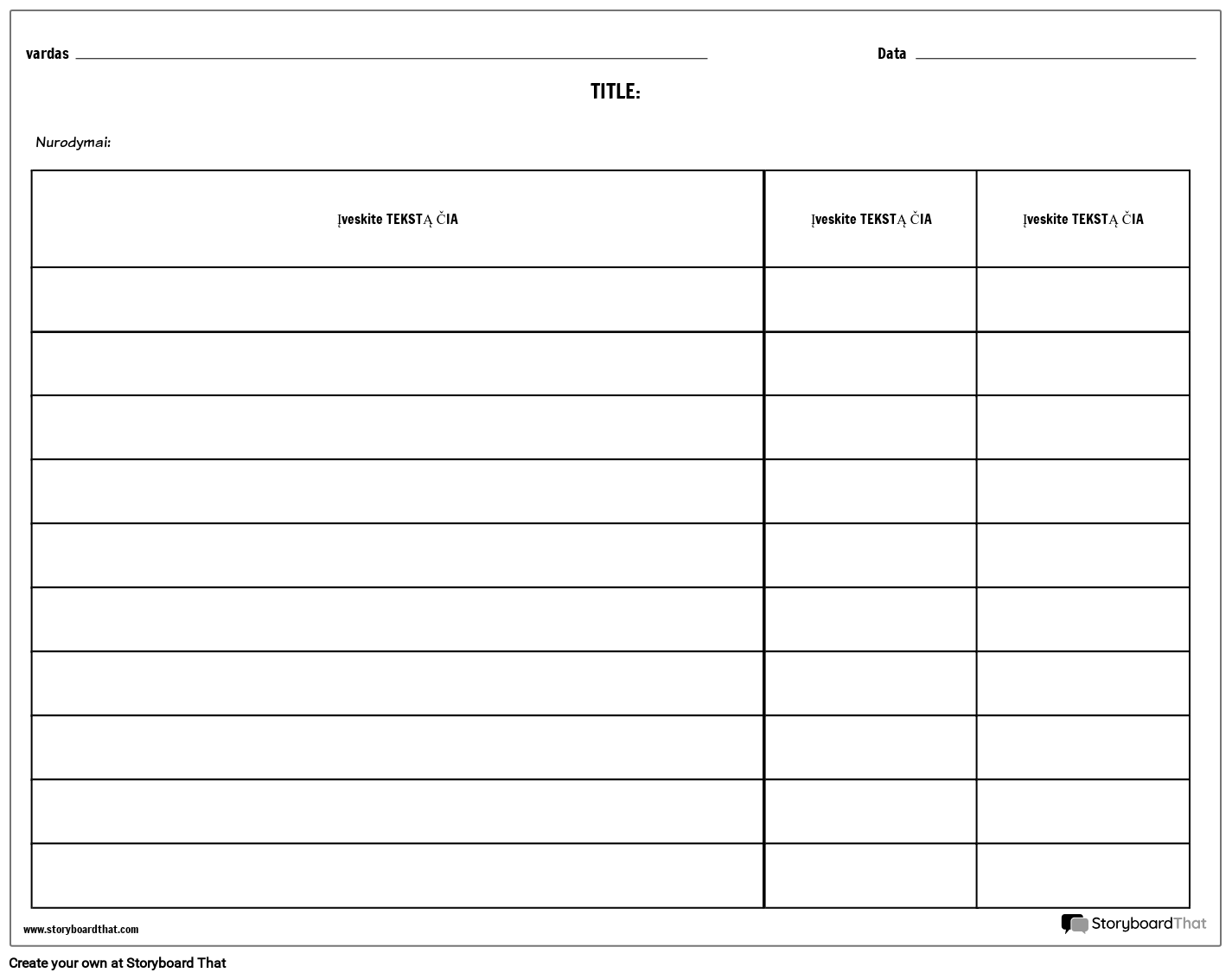 Rubrika – Lentelė
