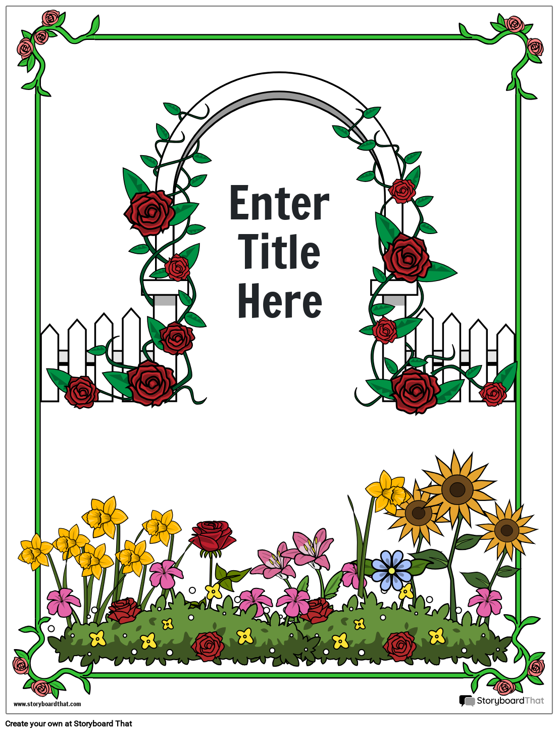 Rožių, gėlių ir grotelių tematikos žurnalo viršelio darbalapio šablonas | Sukurkite segtuvų viršelius, kūrybinio rašymo aplankus ir dar daugiau!