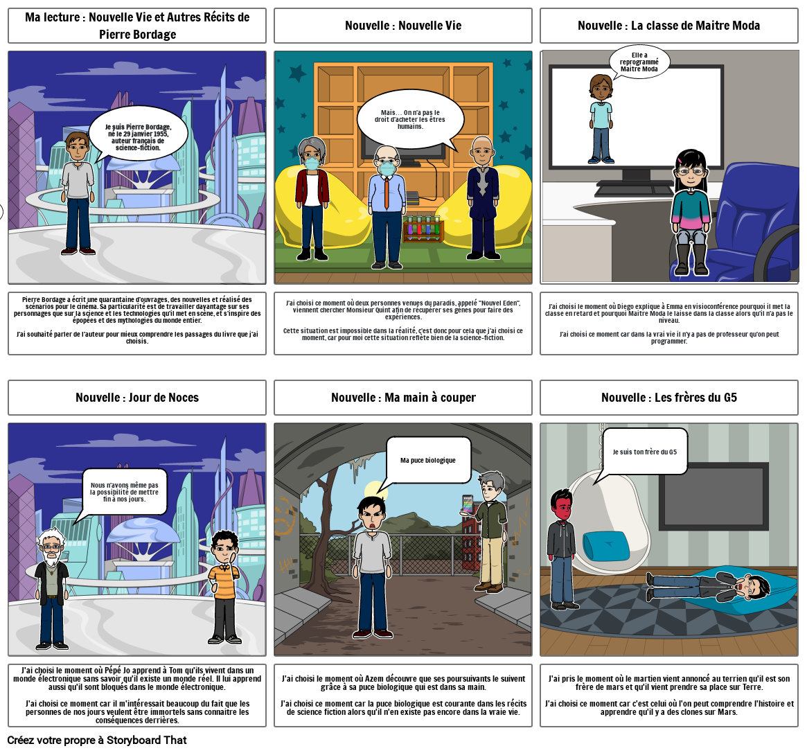 Pierre Bordage a écrit une quarantaine d’ouvrages, des nouvelles et réalisé des scénarios pour le cinéma. Sa particularité est de travailler davantage sur ses personnages que sur la science et les technologies qu'il met en scène, et s'inspire des épopées et des mythologies du monde entier. J'ai souhaité parler de l'auteur pour mieux comprendre les passages du livre que j'ai choisis.
