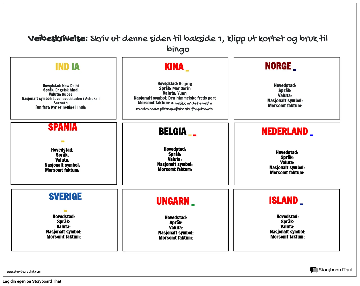 Flagg Bingo /Skriv inn tittel her