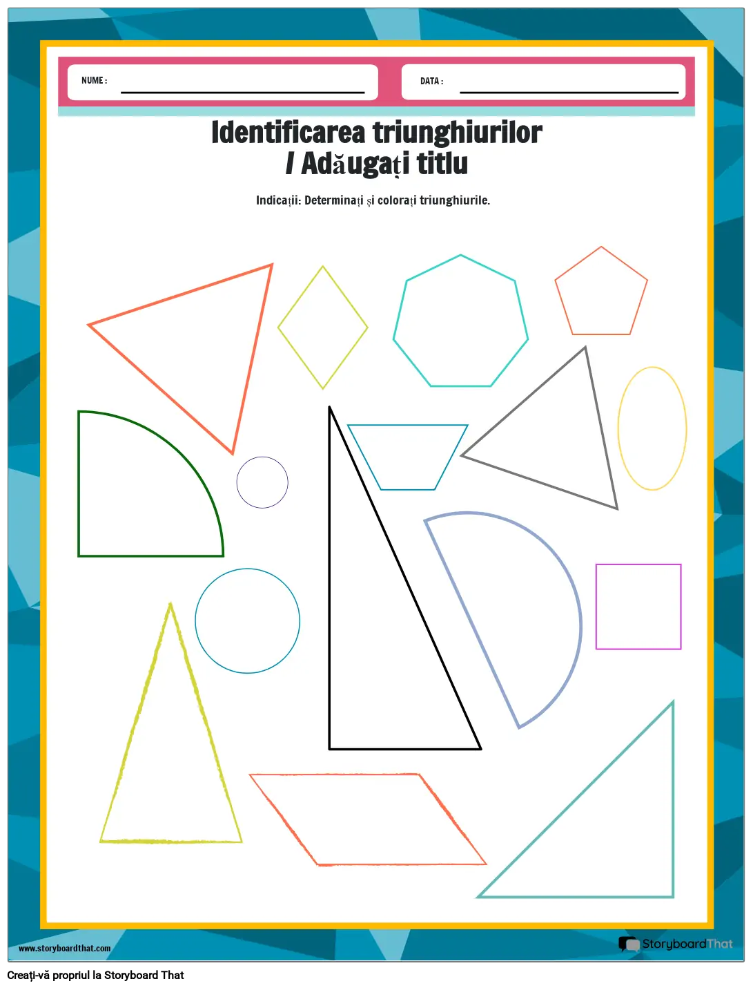 Indicații: Determinați și colorați triunghiurile.