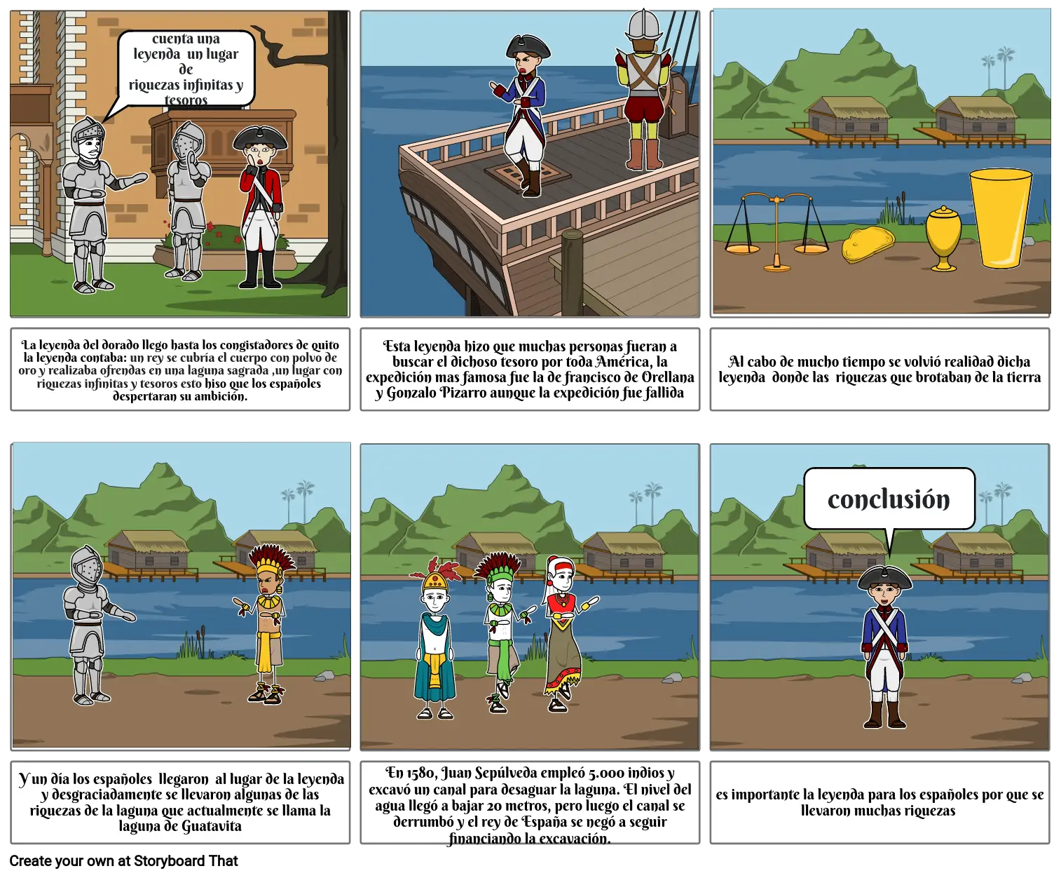 Y un día los españoles llegaron al lugar de la leyenda y desgraciadamente se llevaron algunas de las riquezas de la laguna que actualmente se llama la laguna de Guatavita