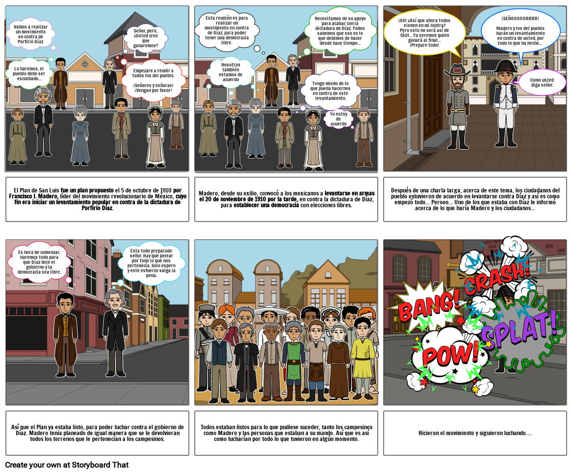 Después de una charla larga, acerca de este tema, los ciudadanos del pueblo estuvieron de acuerdo en levantarse contra Díaz y así es como empezó todo... Perooo... Uno de los que estaba con Díaz le informó acerca de lo que haría Madero y los ciudadanos...