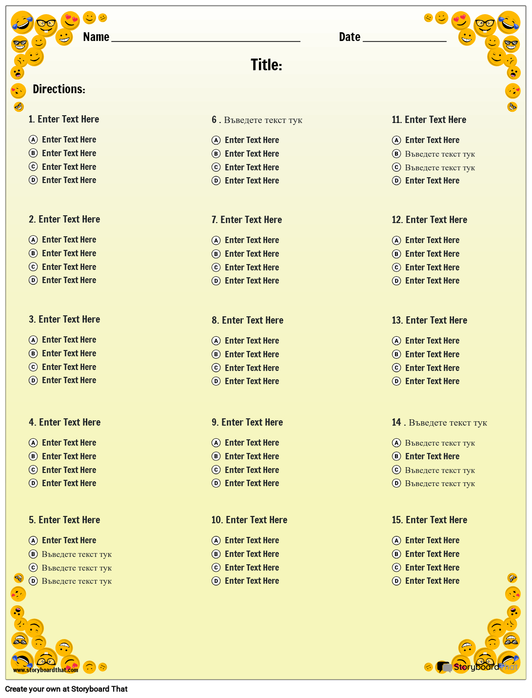 Тема за усмихнато лице с 15 въпроса с множество възможности за избор