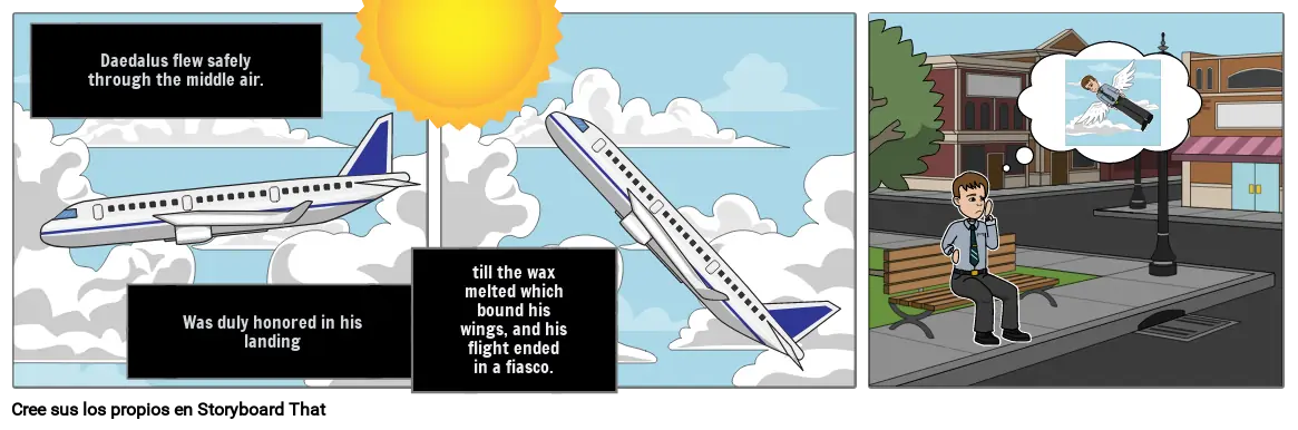 Daedalus flew safely through the middle air.
