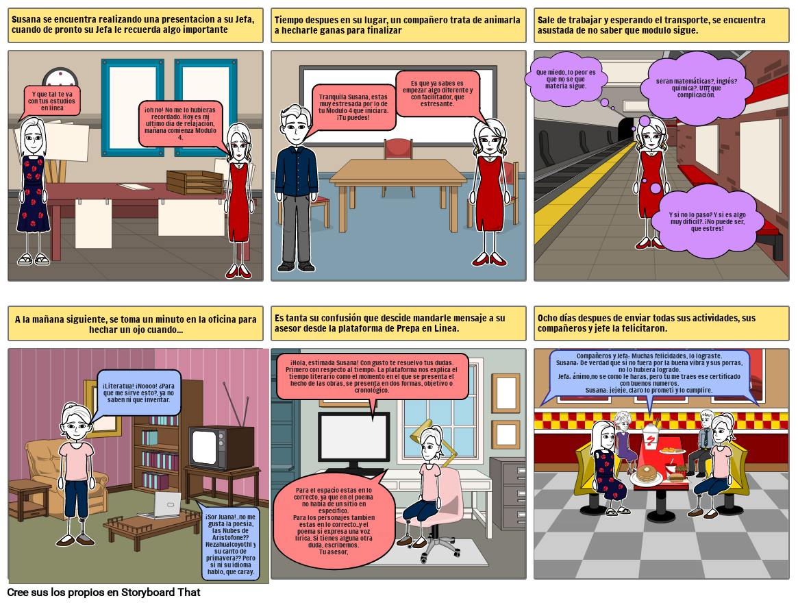 Compañeros y Jefa: Muchas felicidades, lo lograste.Susana: De verdad que si no fuera por la buena vibra y sus porras, no lo hubiera logrado.Jefa: ánimo,no se como le haras, pero tu me traes ese certificado con buenos numeros.Susana: jejeje, claro lo prometi y lo cumplire.