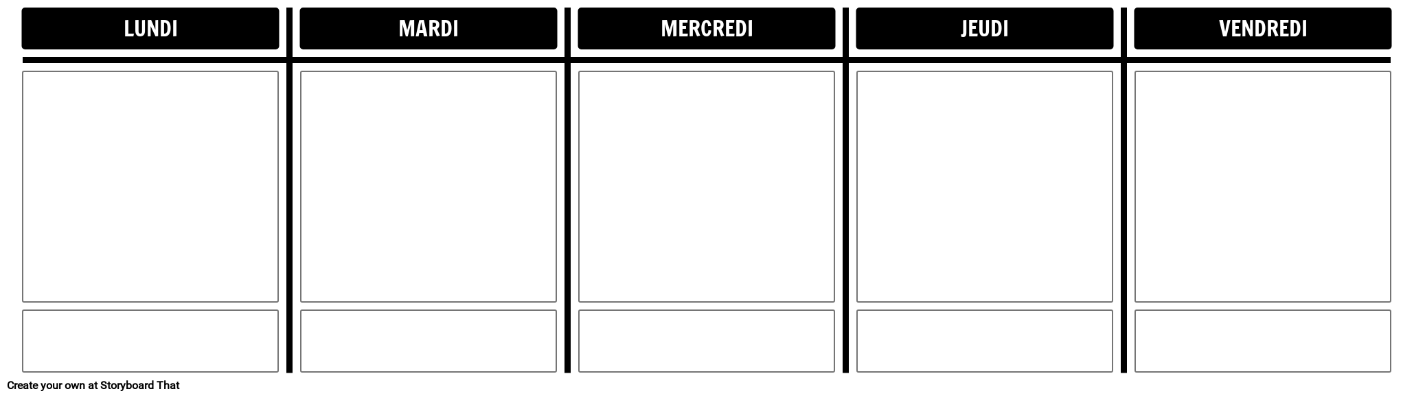 Modèle du lundi au vendredi utilisant la disposition en T-Chart. Ajoutez deux autres cellules pendant une semaine complète!