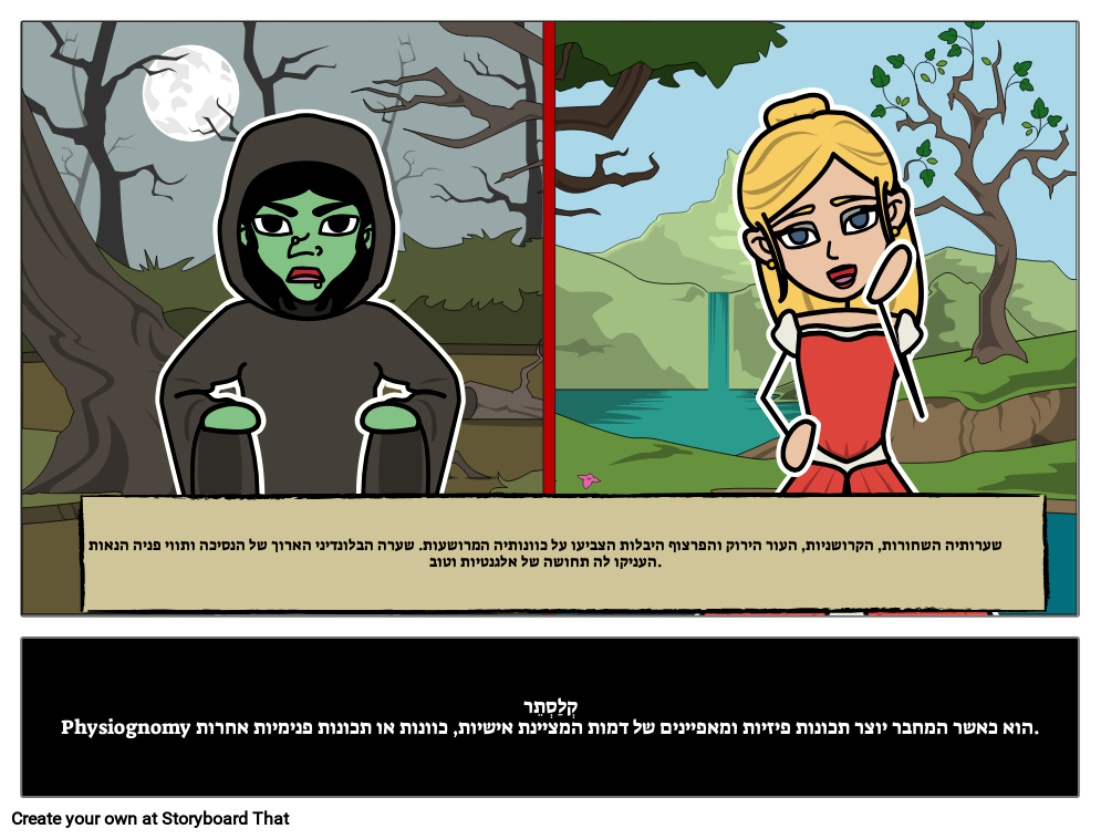 קְלַסְתֵרPhysiognomy הוא כאשר המחבר יוצר תכונות פיזיות ומאפיינים של דמות המציינת אישיות, כוונות או תכונות פנימיות אחרות.