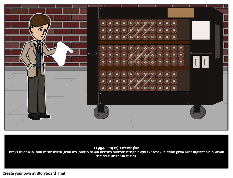 אלן טיורינג (1912 - 1954)טיורינג היה מתמטיקאי בריטי ומדען מחשבים. עבודתו על פענוח הקודים הגרמניים במלחמת העולם השנייה, כמו חידה, הצילה מיליוני חיים. הוא מכונה לעתים קרובות אבי המחשוב המודרני.