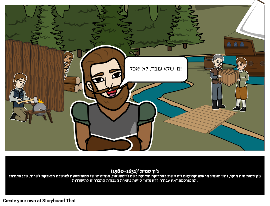 ג'ון סמית '(1580-1631)ג'ון סמית היה חוקר, נווט ומנהיג הראשוןקבועאנגלית יישוב באמריקה הידועה בשם ג'יימסטאון. מנהיגותו של סמית סייעה למושבה הנאבקת לשרוד, שכן פקודתו המפורסמת "אין עבודה ללא מזון" סייעה ביצירת העבודה ההכרחית להישרדות.