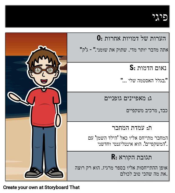 המחבר מתייחס אליו כאל 'הילד השמן' עם 'המשקפיים'. הוא אינטליגנטי וחדשני.