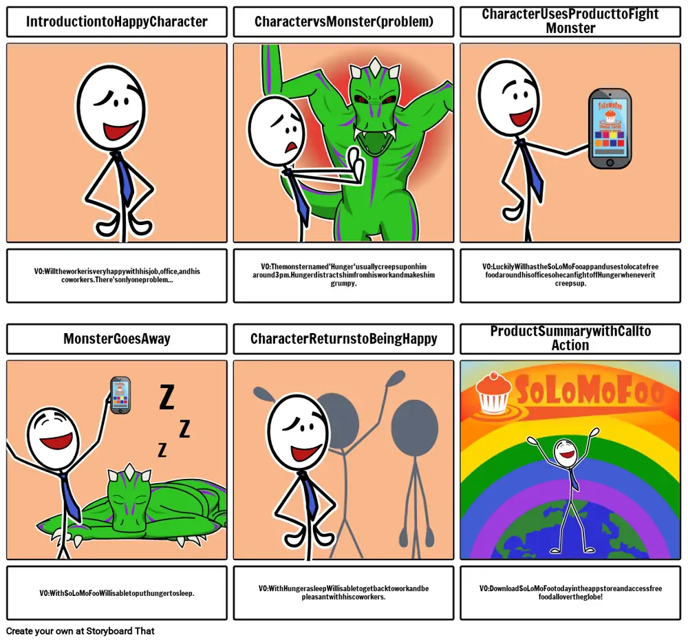 VO: सौभाग्य से विल के पास SoLoMoFoo ऐप है और वह अपने कार्यालय के आस-पास मुफ्त भोजन खोजने के लिए उपयोग करता है ताकि जब भी भूख बढ़ती है तो वह भूख से लड़ सके।