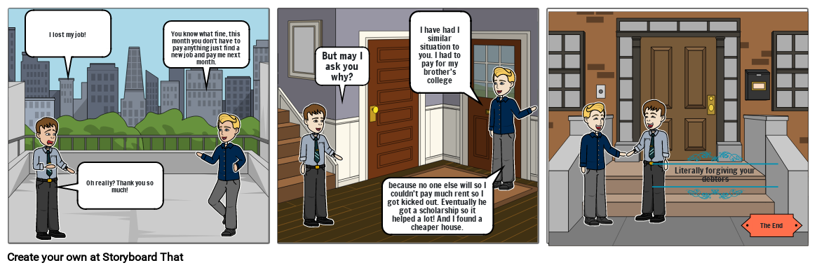 You know what fine, this month you don't have to pay anything just find a new job and pay me next month.