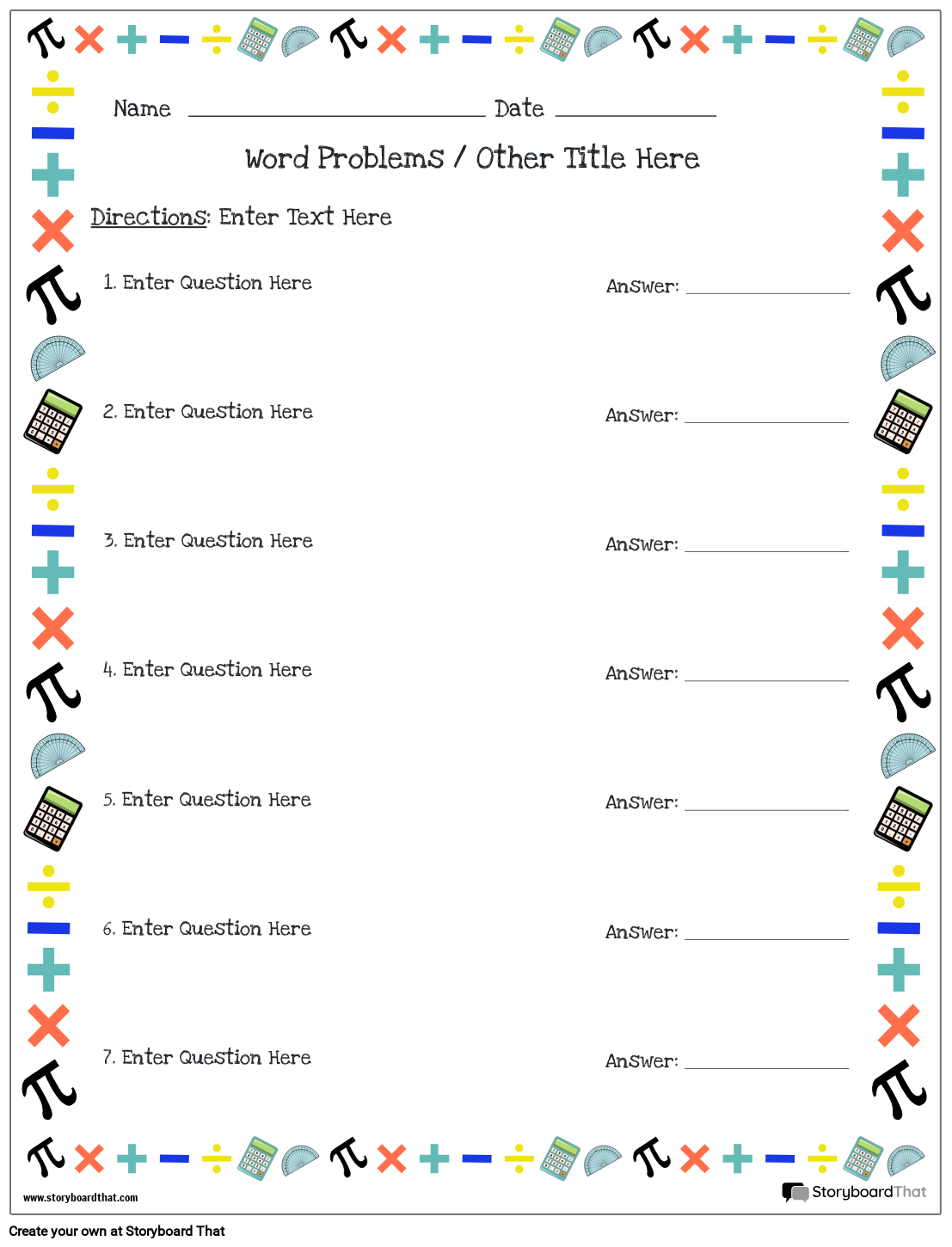 Arbetsblad för ordproblem. Kopiera och anpassa helt enkelt!