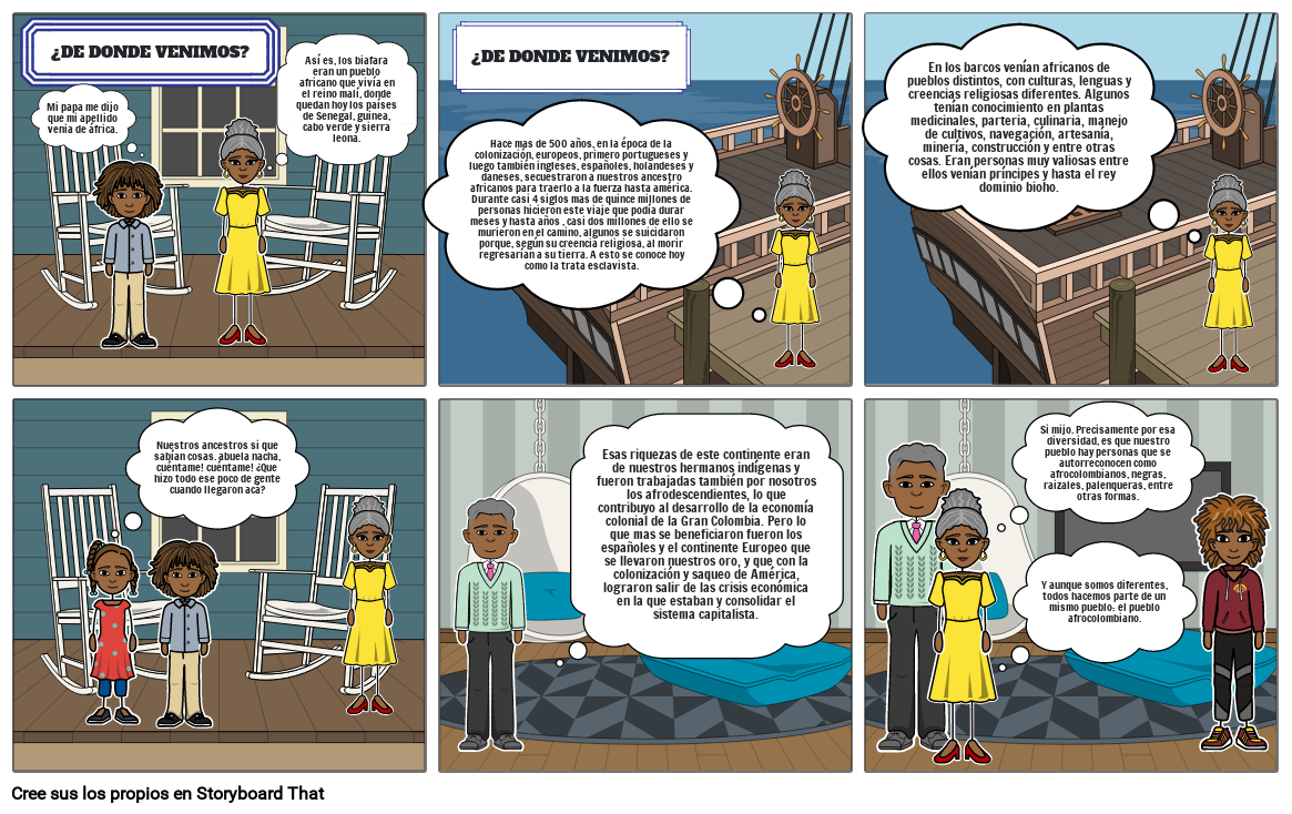 Hace mas de 500 años, en la época de la colonización, europeos, primero portugueses y luego también ingleses, españoles, holandeses y daneses, secuestraron a nuestros ancestro africanos para traerlo a la fuerza hasta américa. Durante casi 4 siglos mas de quince millones de personas hicieron este viaje que podía durar meses y hasta años , casi dos millones de ello se murieron en el camino, algunos se suicidaron porque, según su creencia religiosa, al morir regresarían a su tierra. A esto se conoce hoy como la trata esclavista.