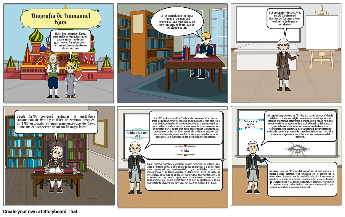 Hola. Soy Immanuel Kant, nací en Kôninberg, Rusia. Mi padre era un modesto guarnicero, fui educado en petisismo (protestantismo de avivaciòn)