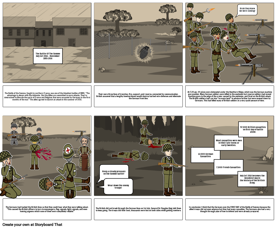 The British did not break through the German lines on 1st July, General Sir Douglas Haig told them to keep going. The troops did their best, thousands were lost on both sides while getting nowhere.