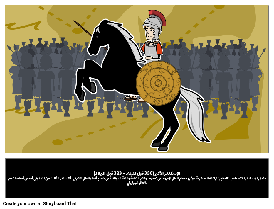 الإسكندر الأكبر (356 قبل الميلاد - 323 قبل الميلاد) يشتهر الإسكندر الأكبر بلقب "العظيم" لراعته العسكرية ، وغزو معظم العالم المعروف في عصره ، ونشر الثقافة واللغة اليونانية في جميع أنحاء العالم الشرقي. ألكسندر الثالث من المقدوني أسس أساسا عصر العالم الهيليني.