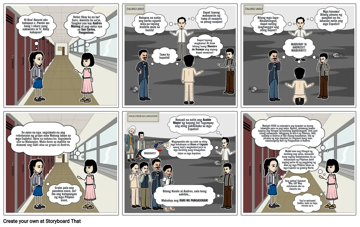 Hello! Okay ka na ba? Sure, ikwento ko sa'yo. Tungkol yon kay Andres Malong at pag-aalsa nya sa San Carlos, Pangasinan.