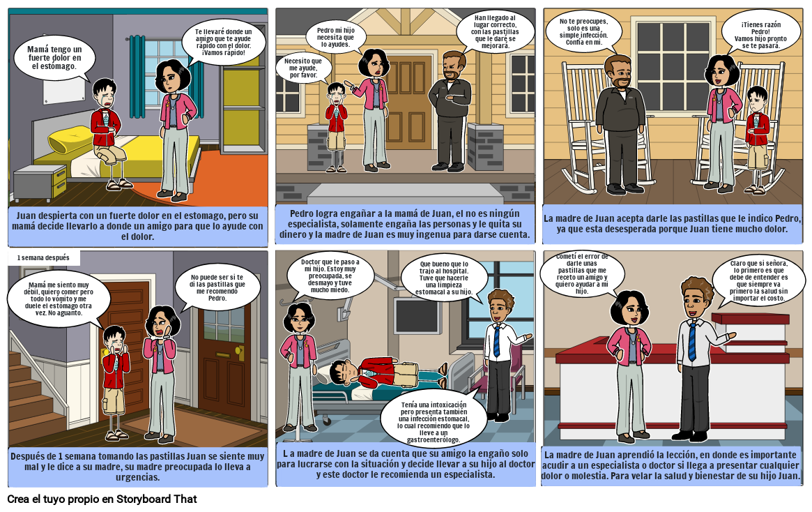 Después de 1 semana tomando las pastillas Juan se siente muy mal y le dice a su madre, su madre preocupada lo lleva a urgencias.